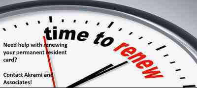 Obtaining permanent resident status is not an easy process, Don’t waste all your hard earned money and effort by allowing your status to expire. The process to renew your permanent resident status can be complicated and confusing. Let the assistance of the professional and educated associates at Akrami and Associates help. Contact us today with any questions or to book a consultation. 416-477-2545 This email address is being protected from spambots. You need JavaScript enabled to view it.